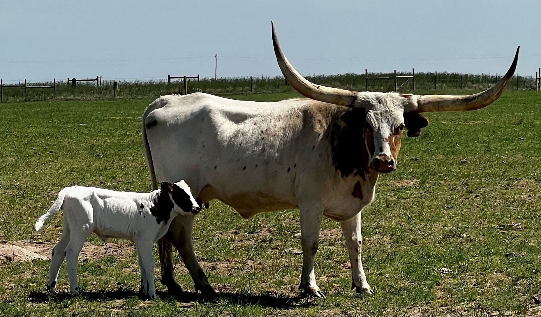 This beautiful heifer is owned by our daughter Hadley. She has an awesome set of handlebar horns and great conformation.