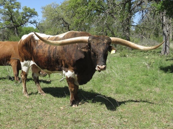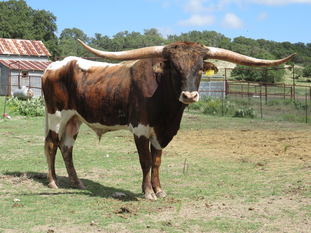 long, tall and handsome brindle masterpiece of a Longhorn bull.